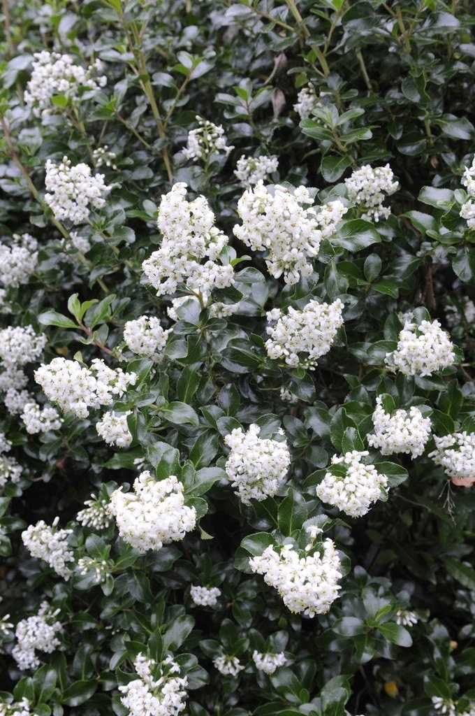 Escallonia ‘Iveyi’ is een bladhoudende heester met zuiverwitte bloemen.