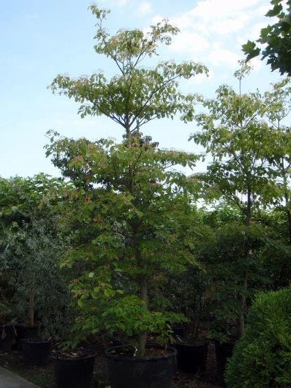 De Reuzenkornoelje groeit met horizontaal liggende takken in etages de hoogte in.