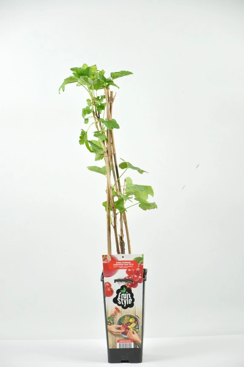 Rode bes (Ribes rubrum ‘Jonkheer van Tets’) is een bekende bessenstruik. De bessen kunt u oogsten vanaf juni/juli. Rode bes (Ribes rubrum ‘Jonkheer van Tets’) verliest het blad in de winter, is zeer winterhard en kan temperaturen tot -34 graden Celsius zonder problemen doorstaan. Als u de Rode bes op een zonnige plek plant kunt u genieten van een goede oogst van gezonde rode bessen. De stamhoogte is 1 meter.