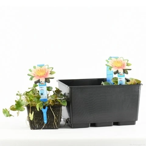 Nymphaea ‘Aurora’ is een waterlelie die oranje-roze bloeit van juli tot september. Jong blad krijgt paarse vlekken en verkleurt naar donkergroen.